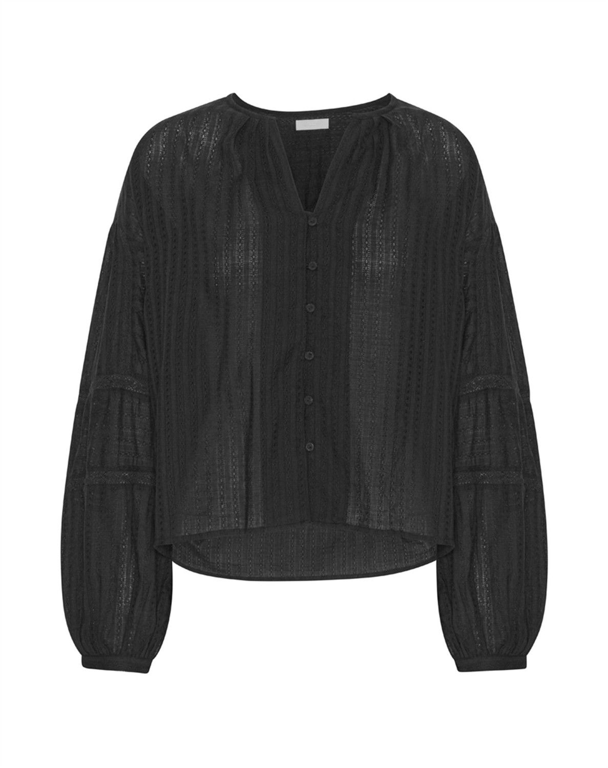 2nd Poem Skjorte - 2nddaySkøn sort skjorte med et kort snit. Fine blondedetaljer.Lange ballonærmer.Gennemknappet.