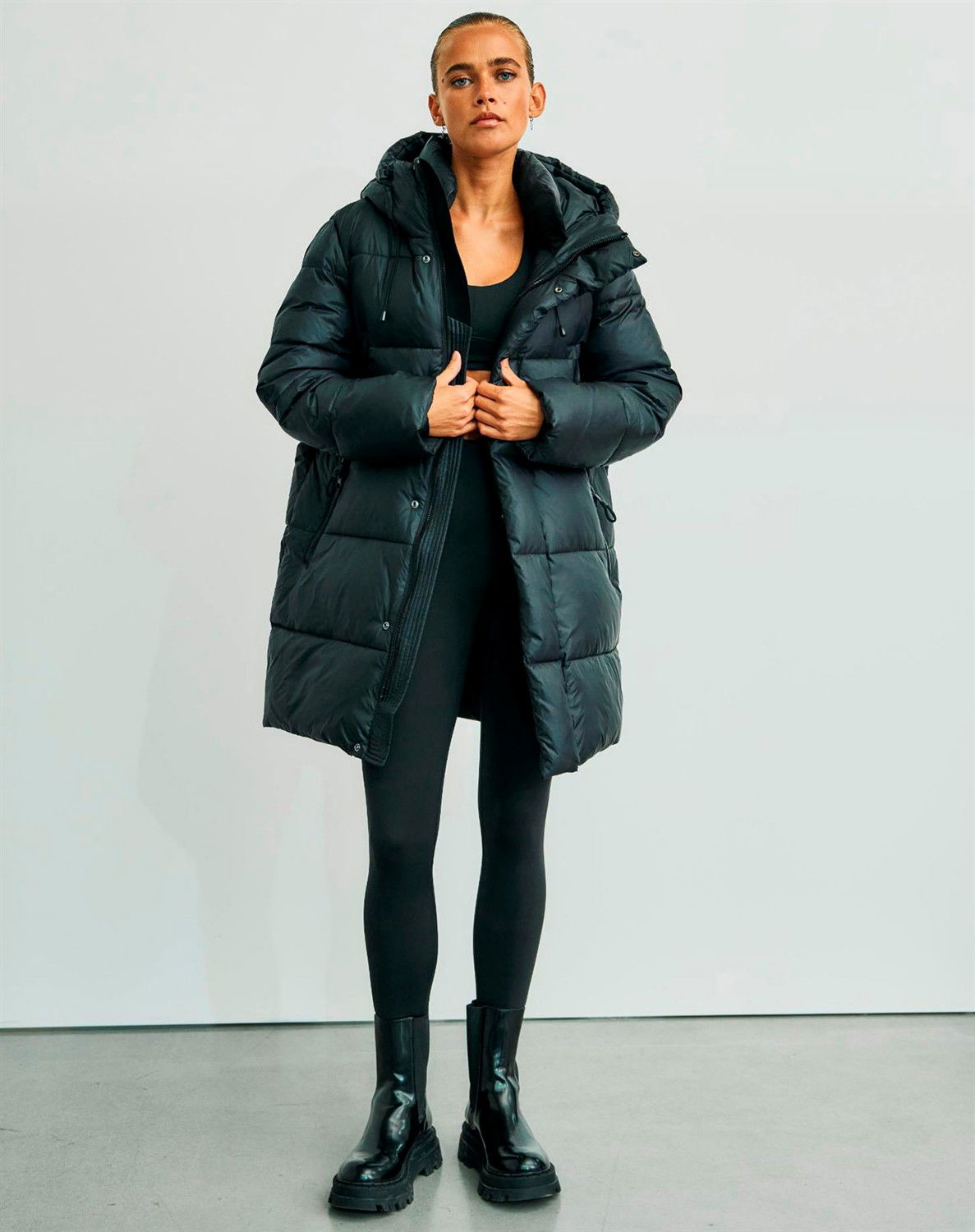 • Hætte med justerbare snøre