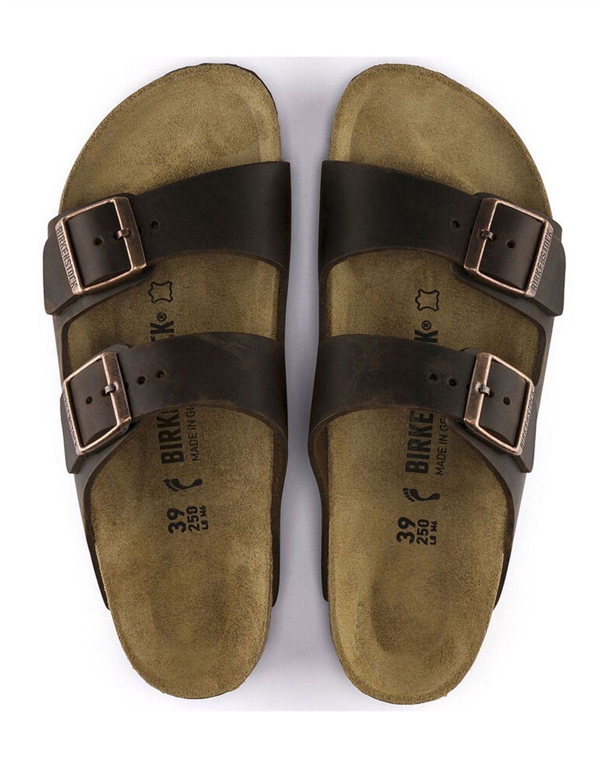 Arizona Oiled Leather Sandal - Habana - BirkenstockArizona sandal i Habana.To remme henover foden. Justerbar spænde.Olieret nubuck læder.Smal model.