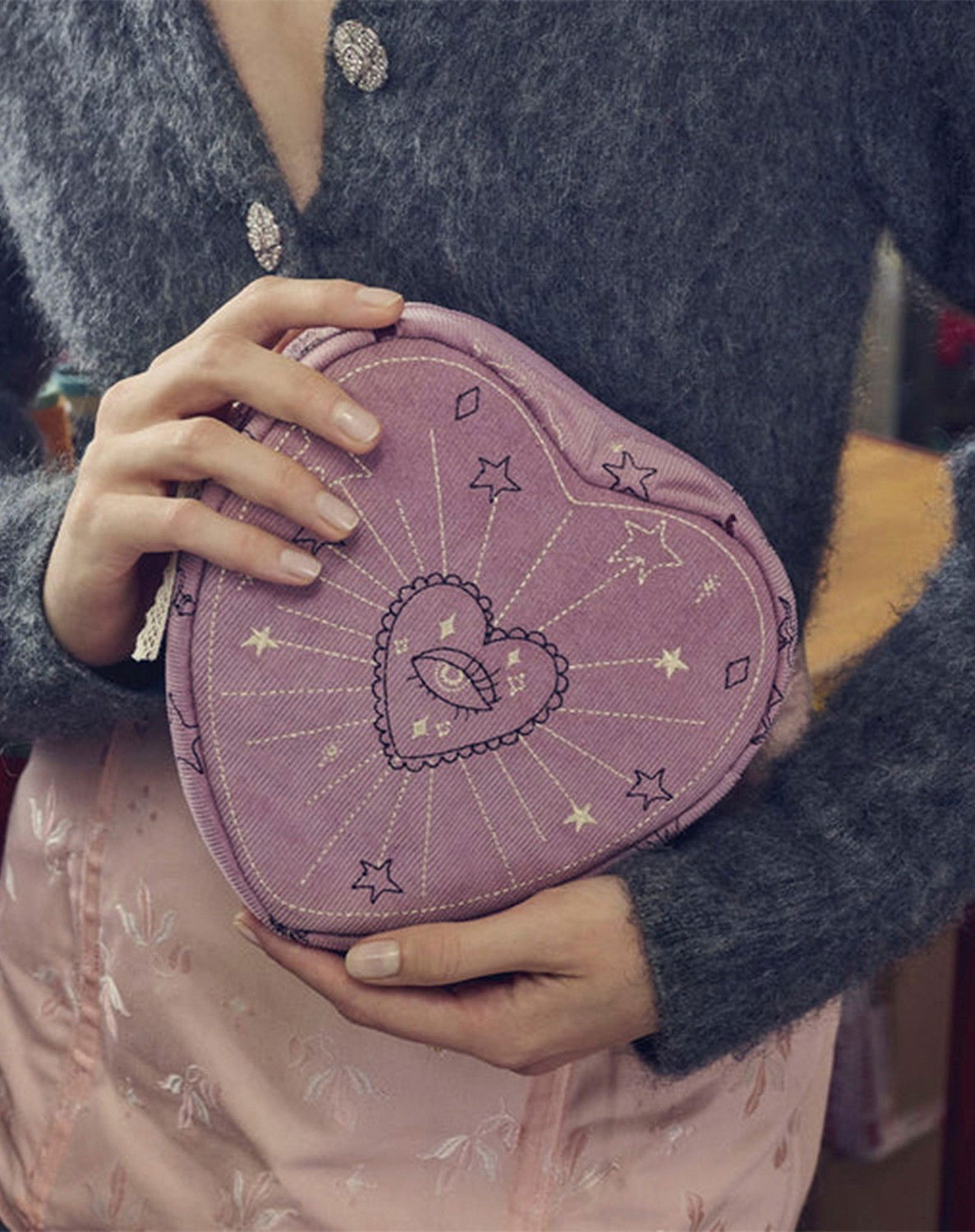 Maanesten - Heart Makeup Taske - Purple Magic Heart
