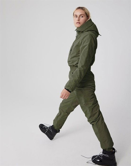 Izabela Flyverdragt - Global Funk  Skøn flyverdragt fra Global Funk, som er designet med gode detaljer og kvaliteter. Flyverdragten er med hætte, lange ærmer med vindstop samt tapede syninger. Den er foret med fleece, som gør, at du kan holde dig dejlig varm. Snøren i taljen giver dig en flot feminin figur sammen med de forskellige lommer den er designet med. Flyverdragten er vindtæt, har et vandsøjletryk på 5000 mm og åndbarheden er 3000 g/m2/24h. Flyverdragten fås i både sort og army.  Tilføj dine yndlings varme vinterstøvler dertil, samt et lækkert tørklæde og hue fra Lala Berlin.