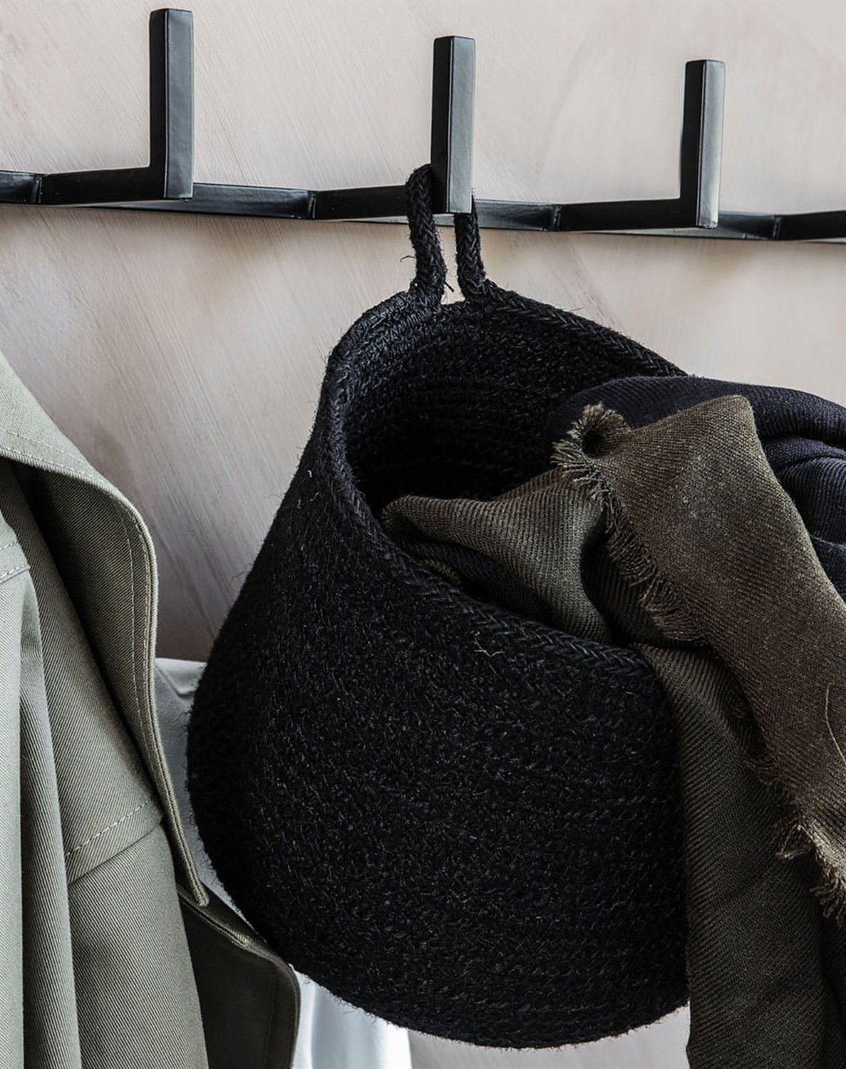 Kurv - Black - House DoctorAlle kender nødvendigheden af smart opbevaring i hjemmet – House Doctor har gjort det igen med deres super smukke og handy kurv med hæng i det populære materiale søgræs i målene 16 cm i højden og 18 cm i diameter. Tag kurven i brug i et ethvert tænkeligt rum og oplev glæden ved eksempelvis af få bedre bordplads i køkkenet, når søgræskurven her pludselig på en smart krog huser de vigtigste køkkenredskaber, der normalt tager plads på bordet eller i det trængte skuffer. Og få et smart look samtidig – den gennemsorte kurv er markant og rå i sit udtryk og vil give en flot kontrast til de fleste rum. Brug den både i badeværelset til toiletrullen tæt på toilettet, på barneværelset med tudser, i bryggerset til bilnøglerne – kun fantasien sætter grænser for brugsværdien i denne fine og smarte kurv fra prisvenlige House Doctor.