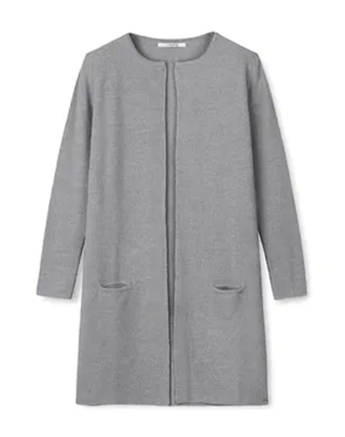 Skøn lang perlestrikket cardigan i lækker uldkvalitet fra Sibin LinnebjergCardiganen har rund hals, lange ærmer og er skåret til omkring knæene. Den har ingen lukning foran og to gode lommer i siden som giver cardiganen et klassisk, enkelt og tidsløst look.