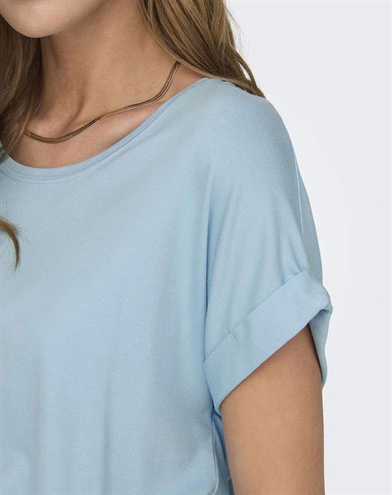 Skøn basic t-shirt fra Only. Denne Moster T-shirt er lavet i en skøn strækbar kvalitet, der gør den super behagelig at bære. Den er designet med rund halsudskæring og korte ærmer og findes i et hav af forskellige farver.