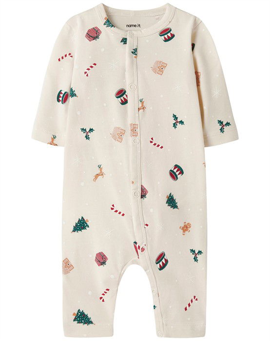 NBNVismas LS Nattøj - Whitecap Gray/Xmas AOP