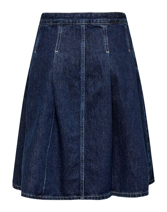 Nina Pleated Denim Nederdel - Dark Blue Denim