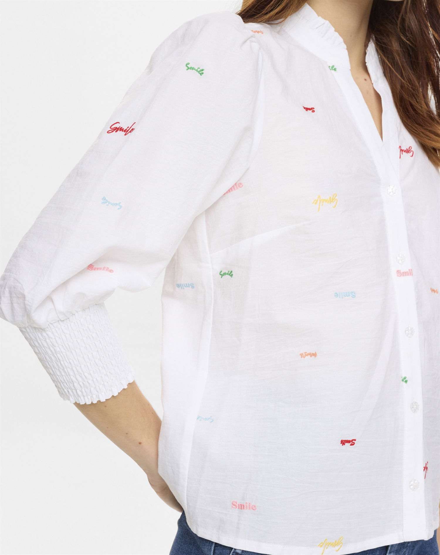 Denne skjorte er alsidig og kan styles på utallige måder. For et chic og afslappet hverdagslook kan du kombinere den med et par jeans og et par sneakers. Hvis du derimod ønsker et mere poleret udtryk, kan den også parres med en nederdel og høje hæle, hvilket giver et elegant touch til din fremtoning. Skjortens enkelhed gør den også ideel til lag-på-lag styling, så den let kan bæres under en blazer eller en let jakke.
