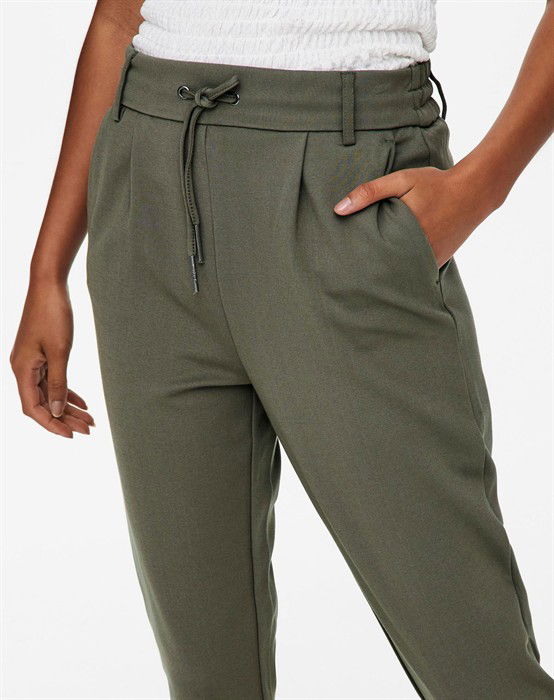 Poptrash Bukser - Only Poptrash Bukser fra Only. Lækre bløde bukser med en afslappet pasform og fitted ben. De er i et let strækbart viskose materiale, der gør de falder flot. Bukserne er med både elastik og bindebånd i livet. De har både lommer foran og bagpå. Du kan både style disse lækre bukser afslappet med en comfy strik og loafers, eller fint med en skjorte og støvler. Bukserne fås i flere farver.