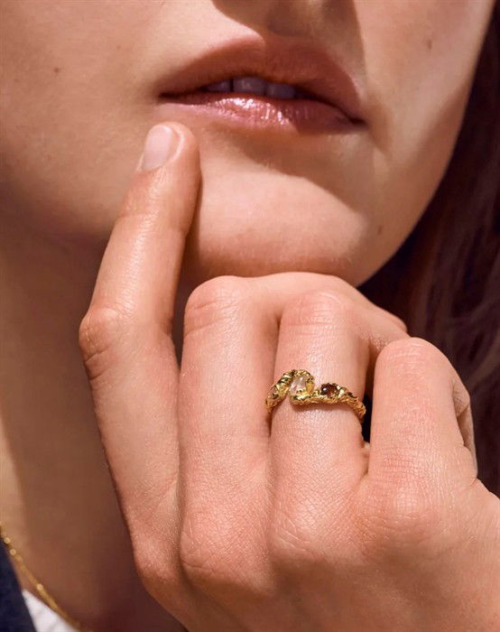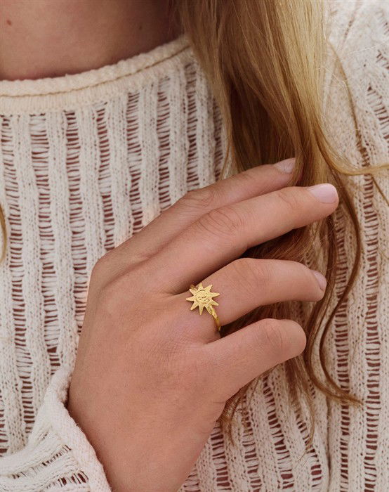 En varm glans med fingerringe i guld