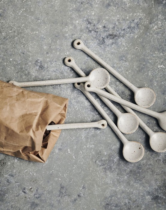 Ske Pion - Grey/White - House Doctor Skøn ske fra den smukke pion serie i grå og hvid fra House Doctor. Den rustikke ske er håndlavet, og derfor har hver og en sit eget unikke udseende. Skeen måler 14 x 2,8 cm i diameter. Brug skeen til at røre din kaffe eller te for at køle den ned. Du kan Kombiner skeen med tallerkener og kopperne fra Pion serien.Se hele udvalget fra House Doctor her
