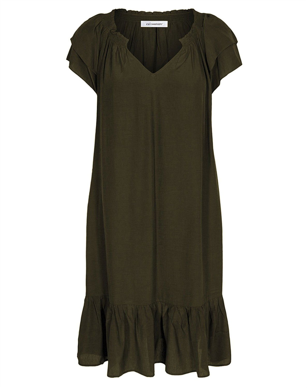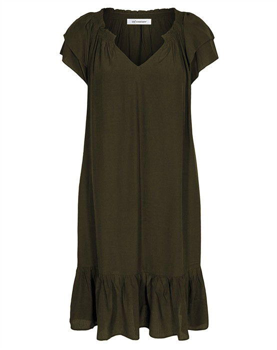 Sunrise Cropped Kjole - Co' CoutureDenne skønne Sunrise kjole fra Co’Couture er tilbage i nye skønne farver, og selvfølgelig også i dem vi kender. Kjolen har fine feminine detaljer med flæseærmer, en bred flæsekant nederst samt elastik, der rynker i halsen. I siderne har kjolen skjulte lommer. Kjolen falder tungt og elegant, og så er den skåret lige under knæet. Med Sunrise Cropped Kjole får du den helt rigtig sommerkjole. Du kan style den afslappet/sporty med et par sneakers fra ARKK Copenhagen. Eller super feminint med et par sandaler fra Billi Bi.