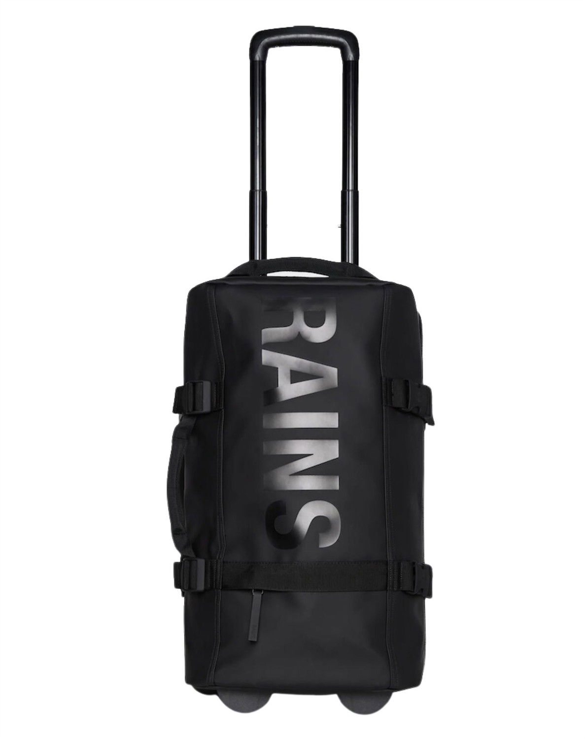 Texel W3 Small Rejsetaske - RainsRejsetaske/kabinekuffet fra RainsLavet af 100% Polyester med polyuretan-belægningVandtæt med søjletryk på 8000 mmKan indeholde 40 L og vejer 3214 gLynlåslomme foran med Rains-logoTo hovedrum med meshlågJusterbare kompressionsstropper i siderneTeleskophåndtagTo lydløse hjul