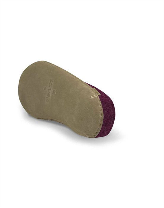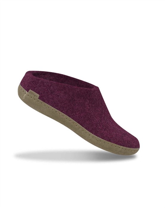 Tøffel - Cranberry - GlerupsSkønne tøfler i lækker filtet uldkvalitet fra ikoniske Glerups. Tøflen har et åbent og stilrent design, som gør dem lette at hoppe i. Futskoen har en lædersål af kalveskind, som sikrer at skoen står fast og giver fødderne den bedste komfort. Den lækre uldkvalitet sikrer varme og tørre fødder, året rundt. Perfekte hjemmesko i den lækreste farve, som er et absolut must-have i enhver garderobe.