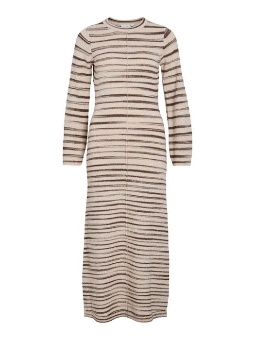VIAlania O-Neck L/S Strikkjole - Birch/Pinecone