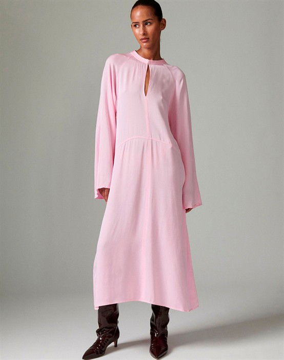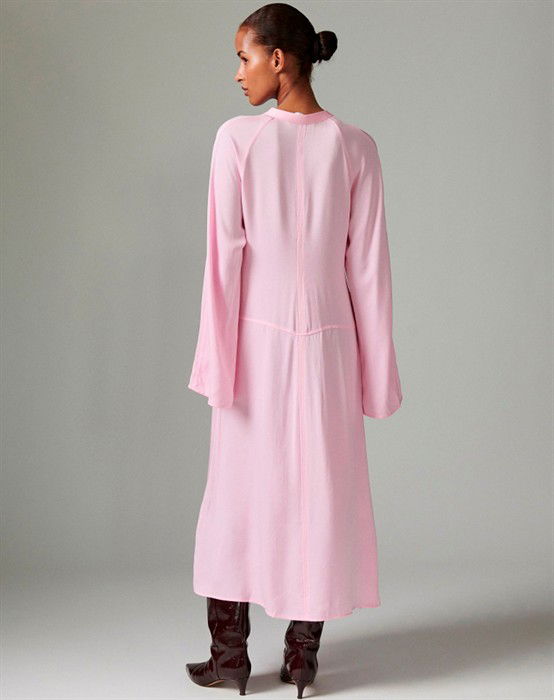 Day Birger et Mikkelsen - Walker Matte Crepe kjole - Pink Lady Lyserød kjole.Brede flotte ærmer.Flot udskæring ved halsen.Giver en flot figur.Let og lækkert materialeDen smukke kjole fra Day Birger et Mikkelsen er i en skøn lyserød farve. Den falder yndigt grundet det lette materiale samt feminine pasform. Style kjolen til hverdag med et jeans og støvler. En aften ude er kjolen smuk med en høj hæl og en taske fra Cala Jade.