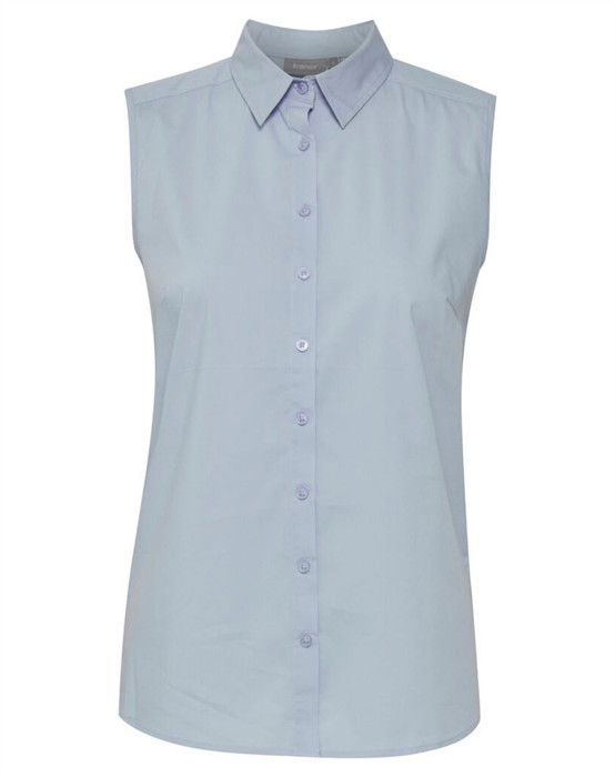 Zashirt 2 Skjorte - Fransa Lækker skjorte uden ærmer fra Fransa. Skjorten har almindelig krave, er gennemknappet og stopper ved skuldrene. Den har en regulær pasform og sidder super flot på kroppen. Style din Zashirt 2 Skjorte under en strik med et par jeans til, eller brug den alene på de varmere dage sammen med et par shorts. Oplev alle de skønne varer fra Fransa lige her